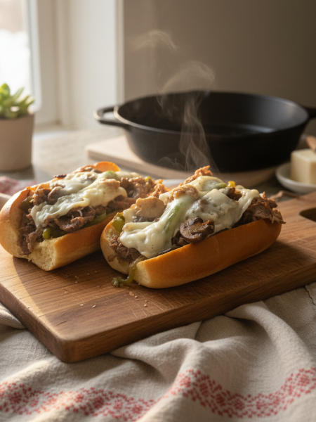 Butter-Skillet Steak Melt on Brioche Rolls