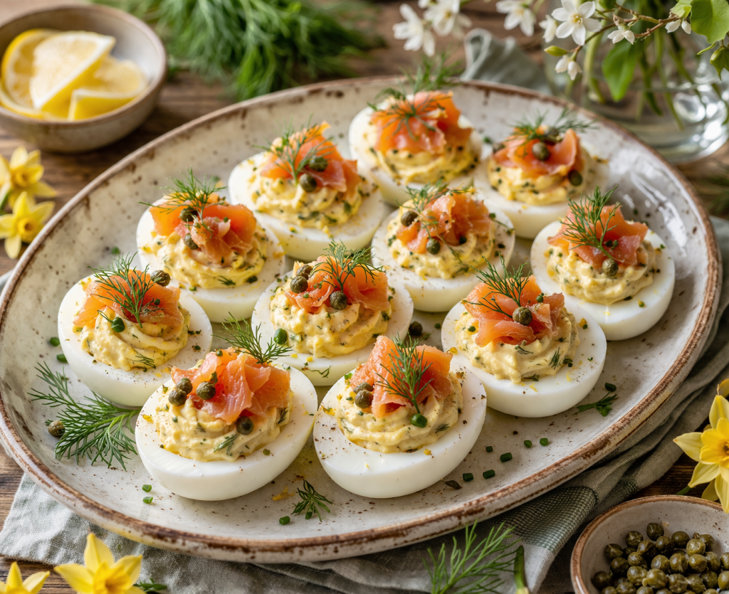 A Nordic-inspired twist on classic deviled eggs featuring silky smoked salmon, fresh dill, and lemon. Creamy, bright, and elegant, these are perfect for Easter brunch or any spring gathering.